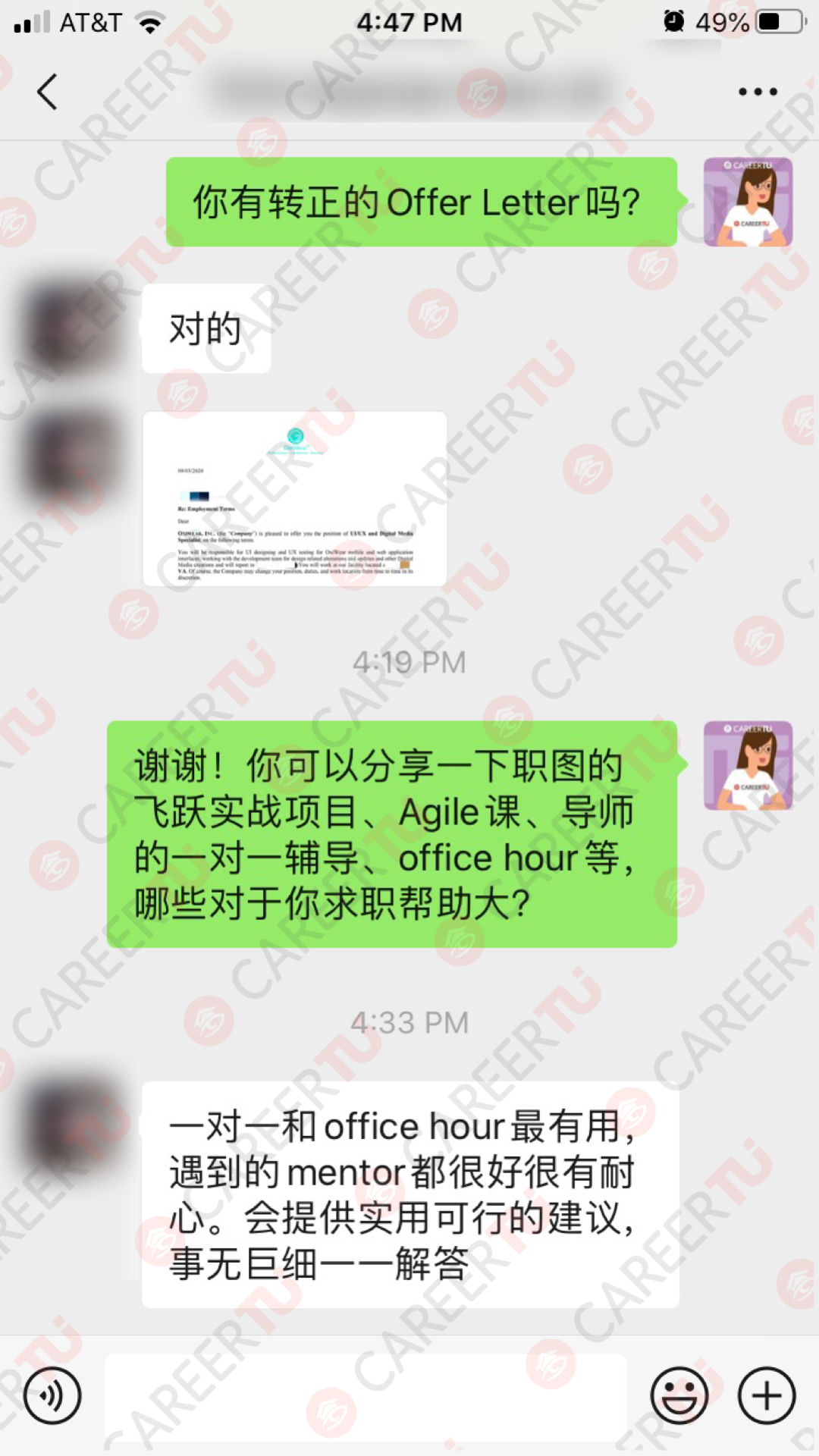 通过过去四个月实战课的学习,以及与业界经验丰富的导师一对一的深入作品集指导,X学员逐渐明晰了交互设计的思想和流程,由导师带着他,掌握交互设计领域的基本技能,把实战课所学的知识同时运用到了自己的实习中。并且最后成功转正。祝愿X学员在接下来的工作中能获得更好的职业发展!