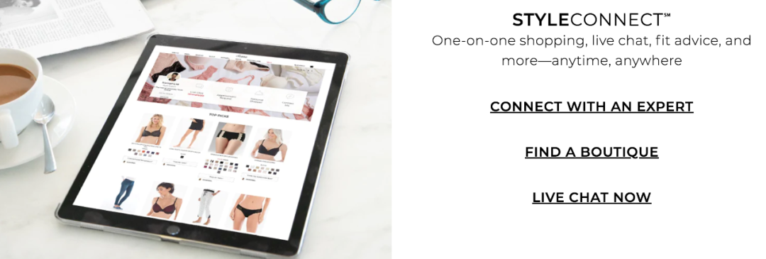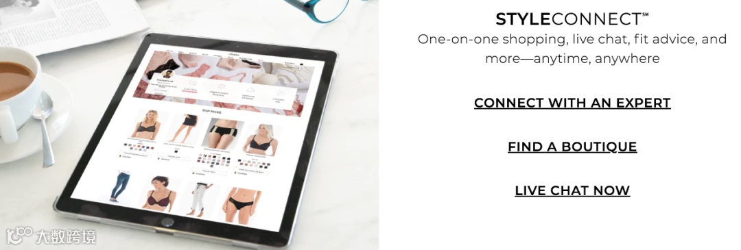Chico's FAS旗下的子品牌Soma采用了电脑芯片测量数据+视频适配会议的试衣方案。通过在SomaInnofit文胸配置一个电脑新品以采集女性测量数据并传送到任一商店,同时连接Style Connect线上试衣间,进行线上试衣。Soma负责销售和设计的高级副总裁Vanessa Dusold表示,疫情时期社交媒体上要求线上试穿文胸的人数开始增长,这一智能试穿工具可以继续为客户提供个性化服务,并保持物理距离的隔离。在最新一次高管会议中显示,最近一个季度的线上销售额同比增长了两倍。