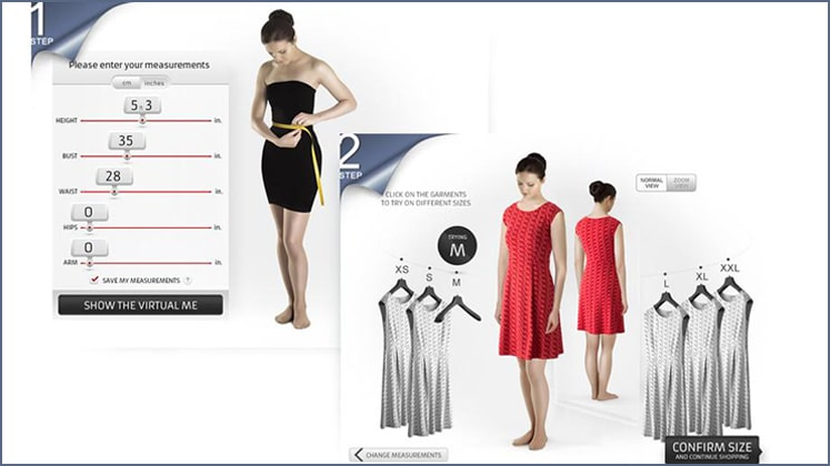 目前已有众多能够实现“线上试衣”技术的软件供快时尚品牌选择,例如Fits.me, True Fit, Metail, Dressformer, Clothes Horse, 和Virtusize等。不少知名快时尚品牌例如Hugo Boss, Adidas, 和Pretty Green都采取了其中的虚拟试衣技术。这些技术都融合了精确图像剪裁、尺寸推荐方案、3D人像模特和增强现实等功能,满足了消费者试衣体验的拟合性。