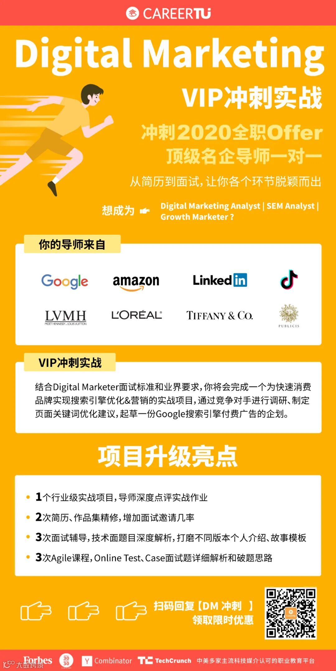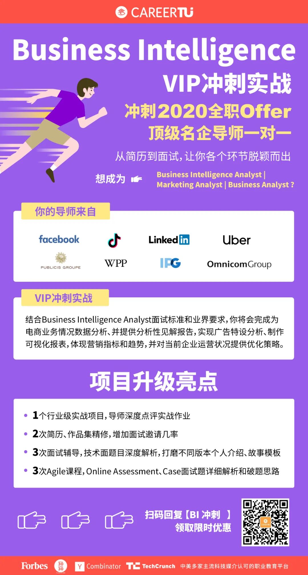 求职直播包含Digital Marketing、Business Intelligence、Data Science、Product Design(UX/UI)四大方向的求职定位、行业现状、简历面试Tips、公司概况等内容。“让你足不出户,零距离对话行业大佬,精准定位求职路线!