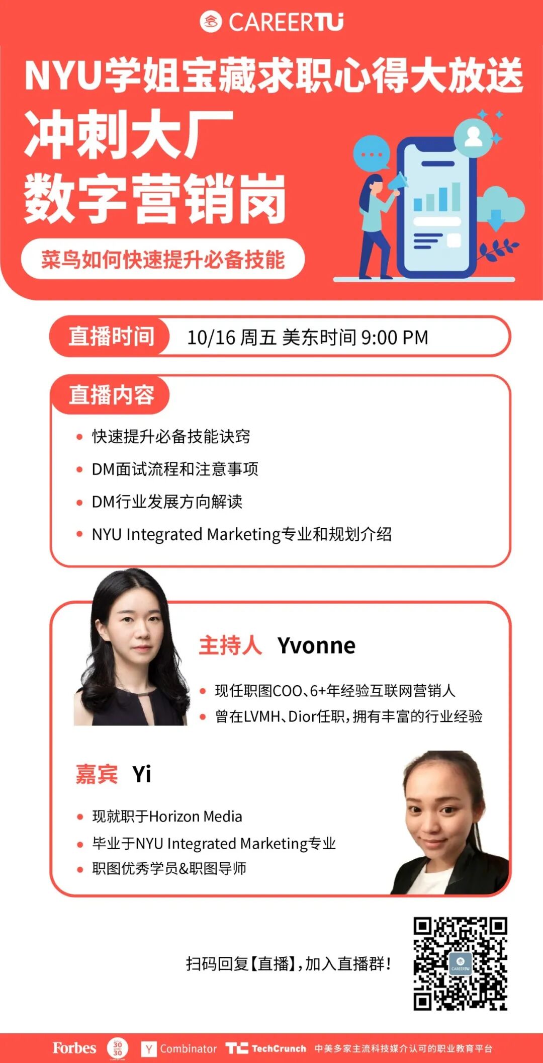 每个人都会经历求职迷茫期,这个时候如果有前辈可以分享经验和为你指点,在求职上一定会走的更快更远!我们特意请到了现任职图COO、6年+互联网营销人Yvonne和职图优秀学员/导师分享求职经验!