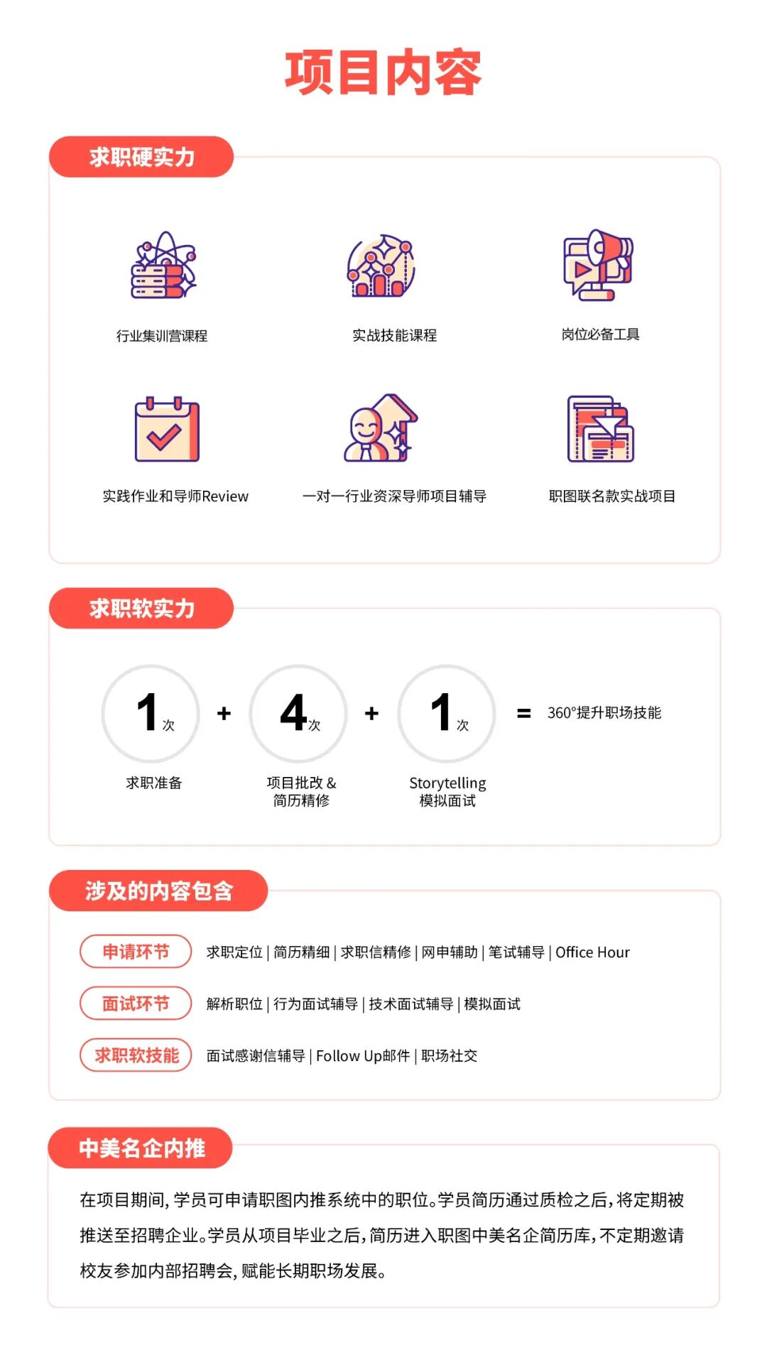 职图飞跃实战的学员,将在6个月的时间内,通过实战联名款真实商业项目,与各个部门相互合作,共同完成联名款产品网页搭建、营销推广和投放、商业智能分析及数据分析、优化的全过程,充实你简历的项目经历、让你面试不怵。