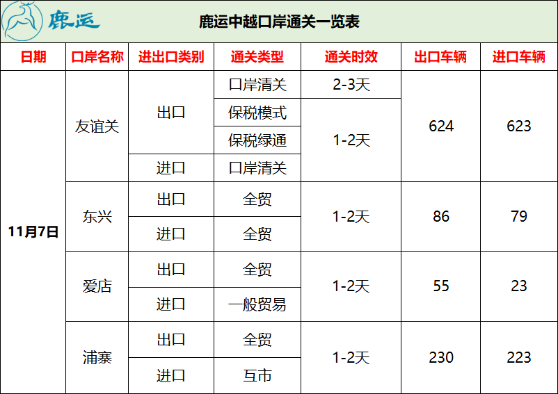 11月7日中越边境口岸最新通关资讯 越南物流专线 快优国际物流