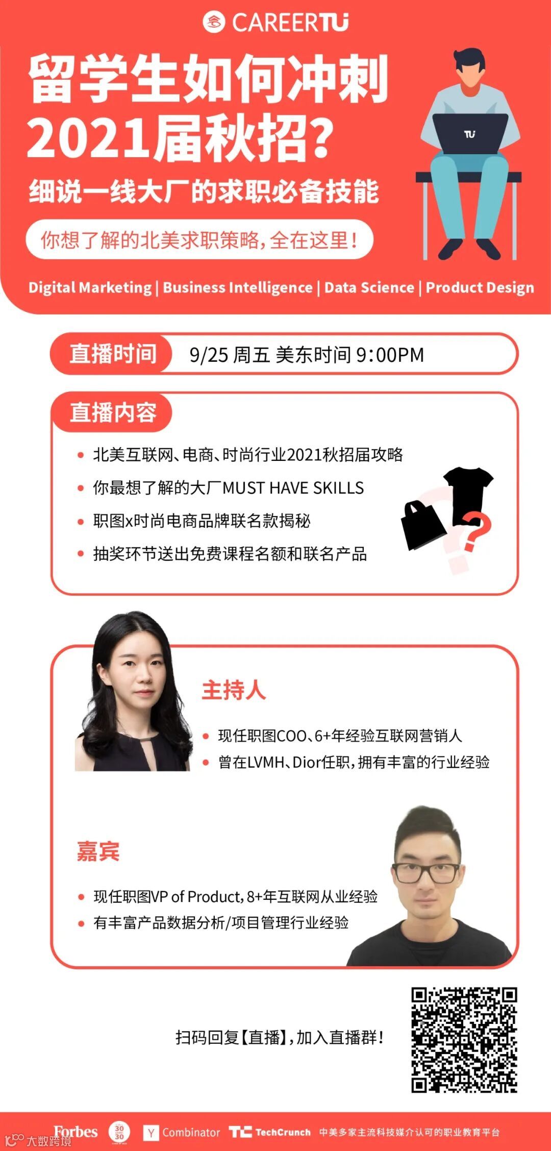 如今秋招正在紧张的进行,越来越多的北美名企开始抢夺Marketing Analytics方向人才。我们在美东时间9月25日,周五晚上9:00,特地邀请到职图COO和VP of Product为大家讲到招聘回暖时期,留学生如何求职以及如何备战秋招。