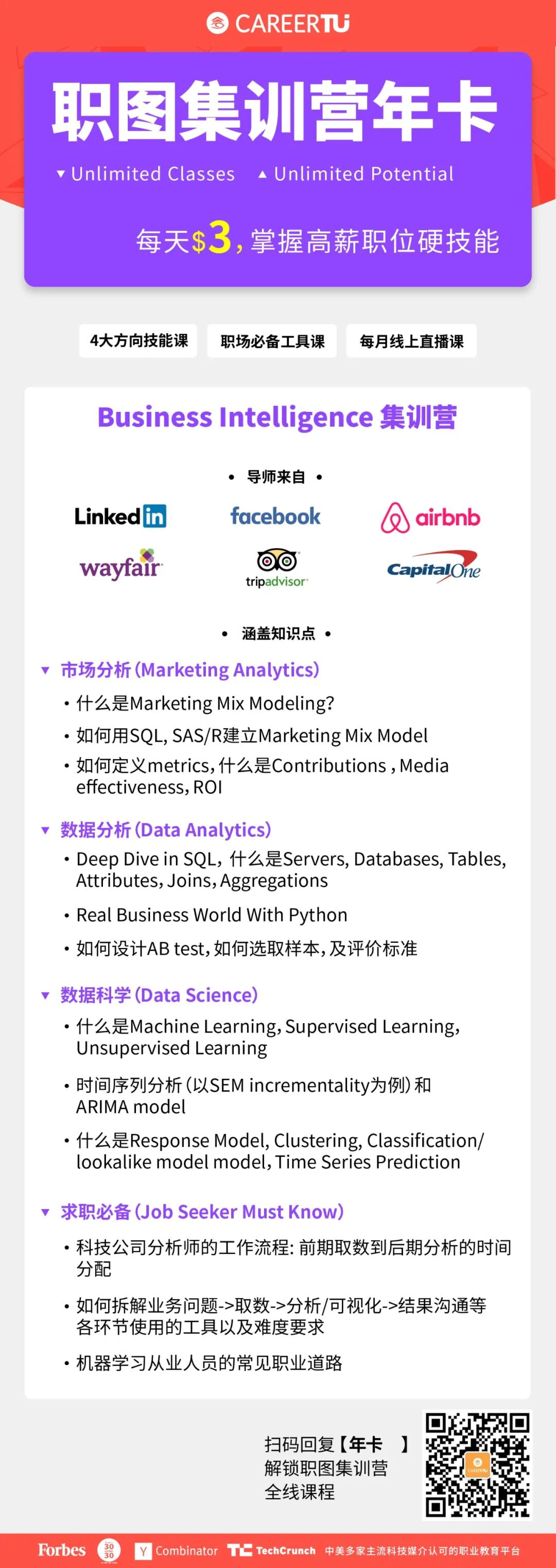 飞跃实战,面向Digital Marketing、UIUX Design和Business Intelligence,Data Science四个求职方向的同学招生!