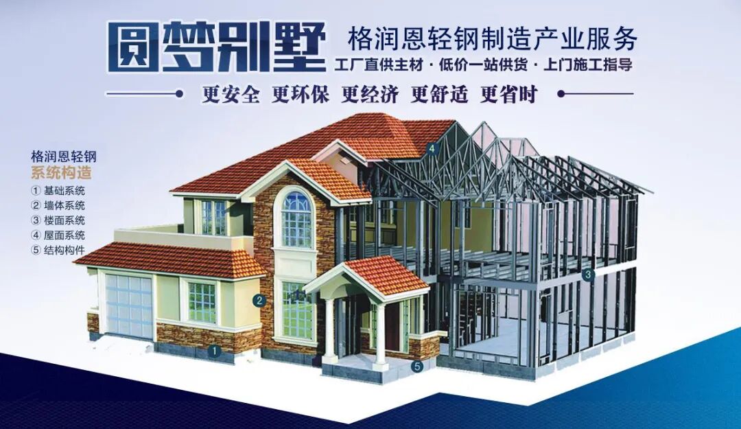 轻钢房屋是一种源于北美木结构的建筑形式,其主承重结构采用材料厚度0.8mm-1.6mm的冷弯薄壁型钢,亦称(超)轻钢住宅。经过近三十年的发展,(超)轻钢住宅在北美、澳洲、日本、欧洲已形成了完善的体系,凭借其绿色环保、节能耐用、安装便捷的特点,这种建筑越来越得到普及。