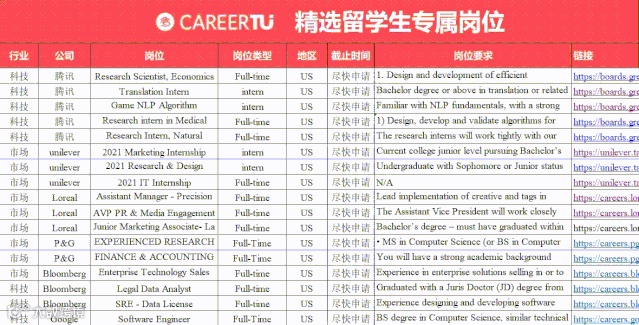 申请环节:求职定位 | 简历精细 | 求职信精修 | 网申辅助 | 笔试辅导 | Office Hour