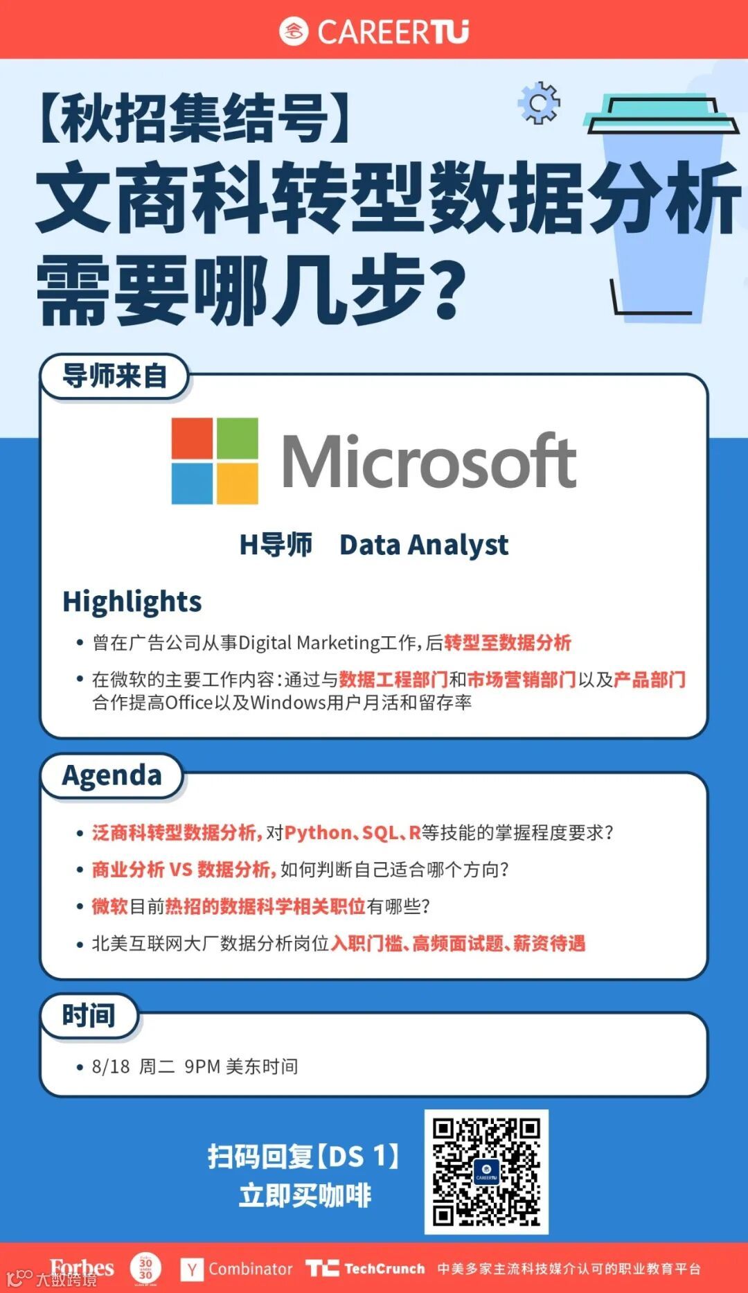 扫码回复【DS 1】报名