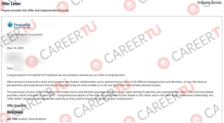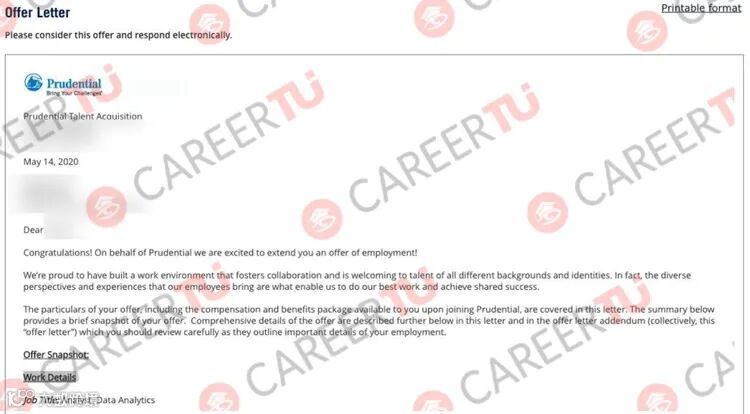 加入职图之后,我首先通过职图的内推拿到了了Tiktok的Product Marketing Intern Offer,一两个月后,在导师的面试培训下拿下了Prudential 的 Data Analyst Full-time Offer。