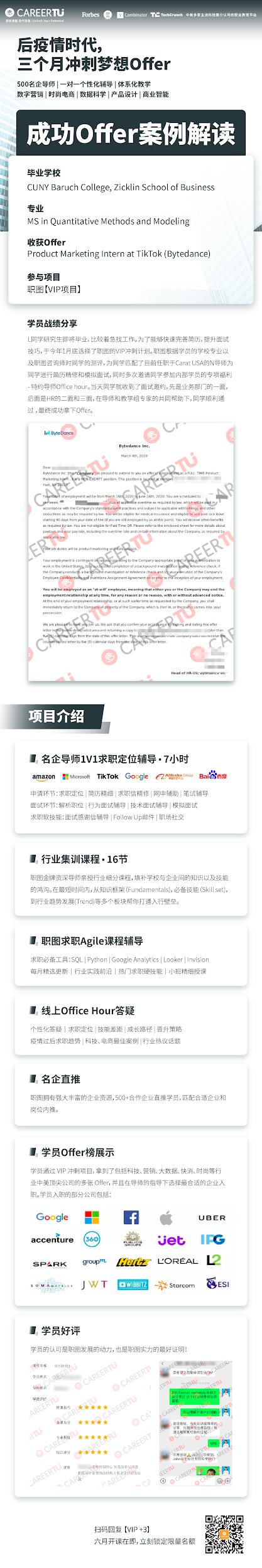 今年,职图耗时3个月,为大家全新打造VIP冲刺计划,邀请来自Amazon、Google、TikTok、Sephora等国内外一线互联网大厂的导师亲自带队授课。