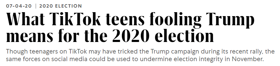 想必是抖音威武了,可以影响美国总统大选了。但是当时特朗普否认了抖音的影响。