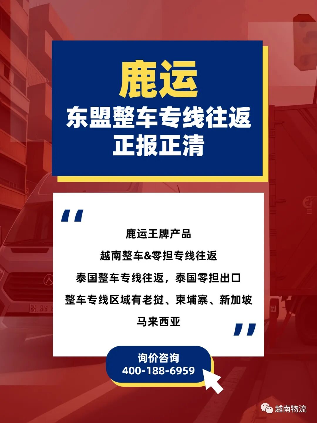 鹿运国际主要从事越南物流专线往返,零担&整车均可,东盟整车专线往返,正规报关通关时效快,全程GPS车载监控系统保障货物安全,十年国际陆运经验、客服一对一服务。