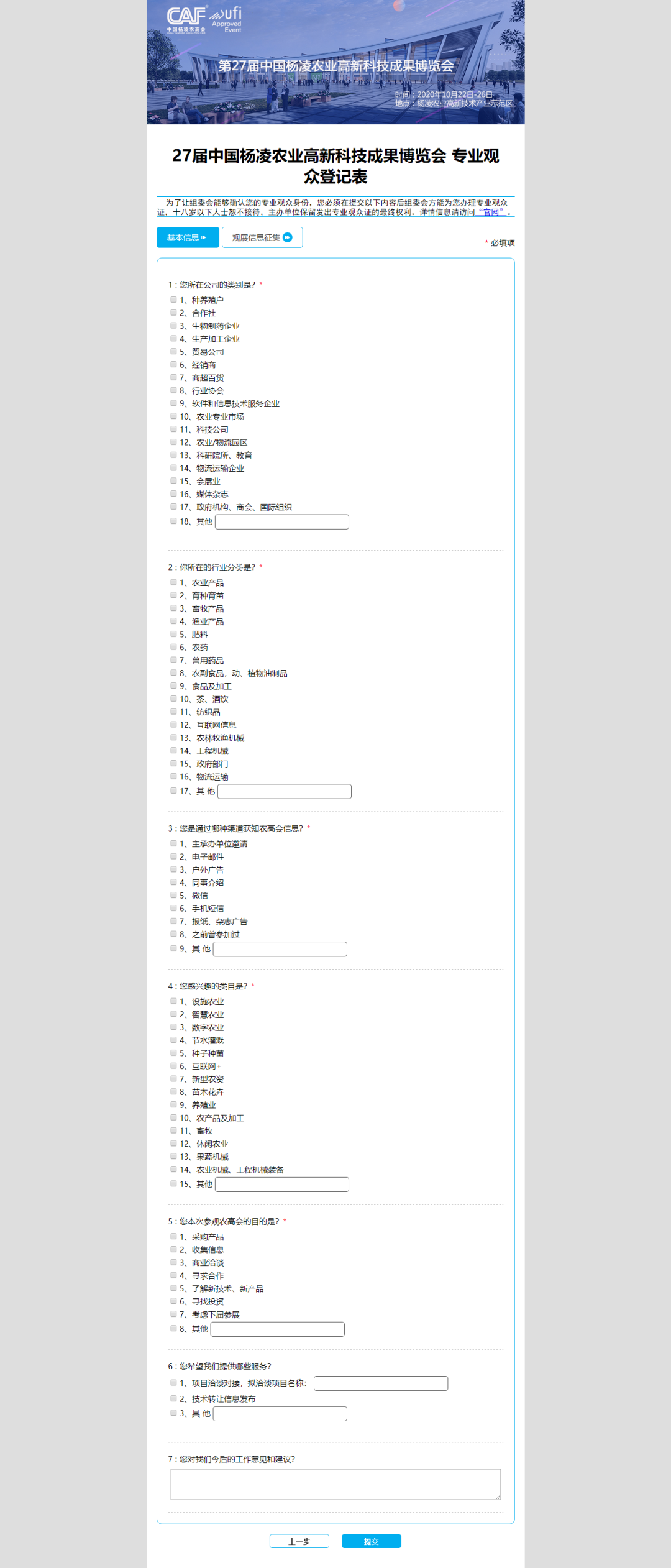 四、基本信息填写。按要求如实填写您的信息(带※的是必填字段哦),下一步,就到了观展信息征集页面,按照您的实际情况,勾选就可以了。待您核查确认信息无误,即可提交。