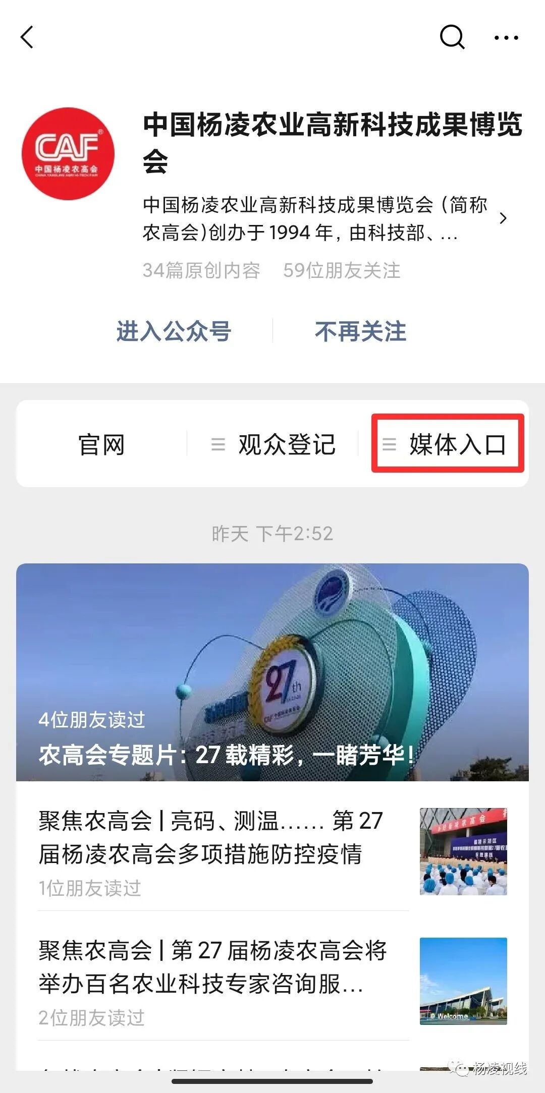 杨凌农高会主页面下滑至展会服务,点击第二项媒体入口。
