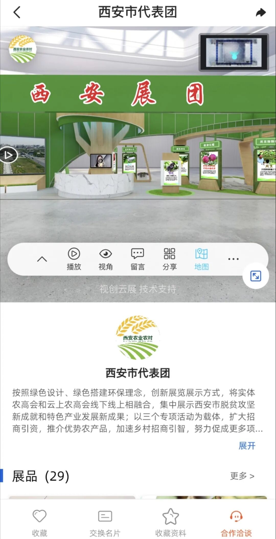 依托阿里巴巴人工智能、VR等技术,“杨凌农高会”APP首页的设计就充分体现了科技感。启动页的农高会海报以及交替出现的四季农业海报,充分融合农业+科技的元素;首页3D展览展示页支持直接点击进入对应展馆展厅的功能。APP还可以实现一键自动逛展,看到感兴趣的展品再通过触屏暂停浏览,保证让您不错过任何一个精彩的展览内容。记者通过APP逛展发现,与去年相比,本届农高会创建了C馆、D馆展团线上虚拟展厅,内容包括乡村振兴暨脱贫攻坚成果展、农业高新科技展及国际农业合作展等。借助三维仿真建模、虚拟现实等技术,“杨凌农高会”APP会期将充分还原线下实体展览展示盛况,让观众充分享受沉浸式观展的体验,即使身在千里之外,也仿佛身临其境。