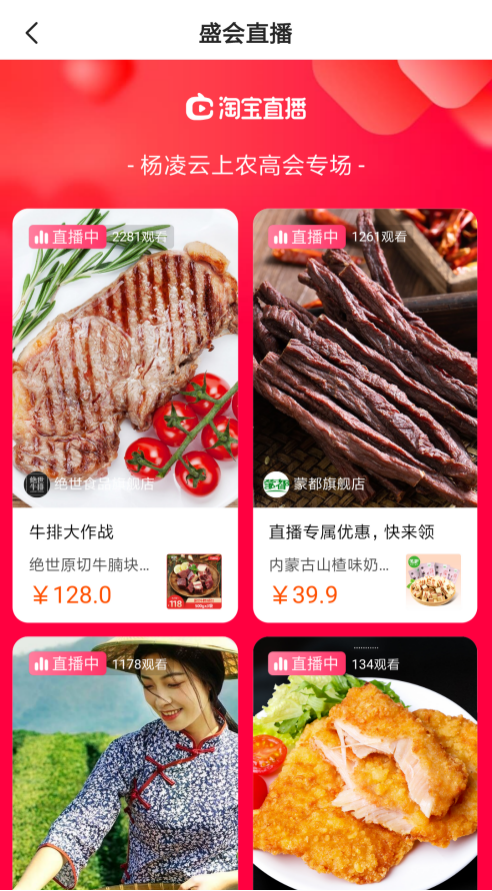 阿里巴巴集团内容电商事业部负责人认为,“5G技术商用,会带来极大的想象空间”。借助5G技术,云上农高会不仅能实现展览页面加载速率的飞跃,还有一个重要的概念,就是万物互联,首页“盛会直播”栏目就能够给观众带来截然不同的购买体验。众多参展农产品直播汇聚成了“杨凌云上农高会专场”,点击喜欢的展品页面,看到的不再是详情页,而是各种各样的直播间店铺,一种更具场景化和互动性的销售方式充分建立了买卖双方的信任。选定商品后就可以通过淘宝购买了,这些功能打造了一场别开生面的农产品直播带货狂欢节。