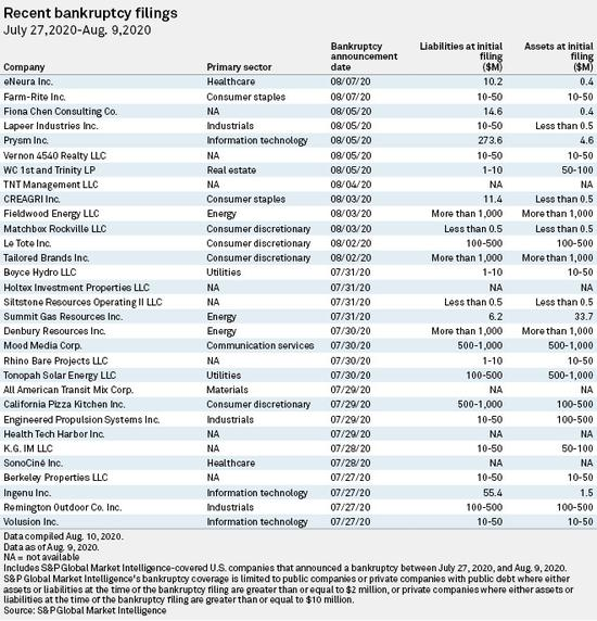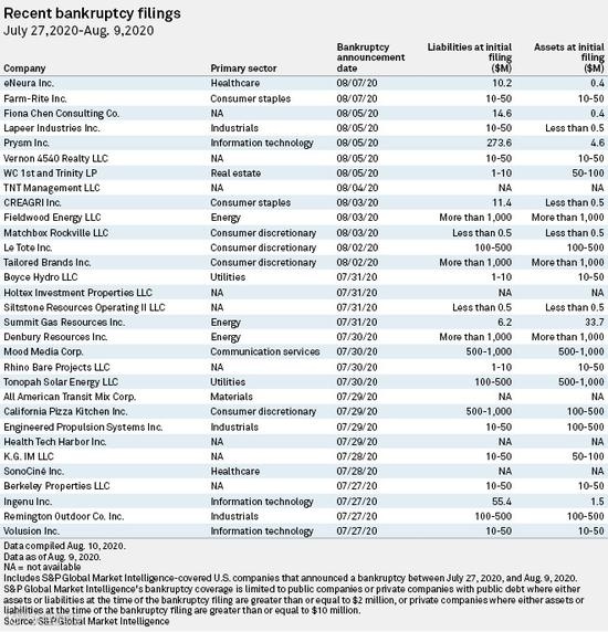仅在7月27日至8月9日期间,就有31家公司申请破产。