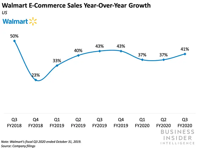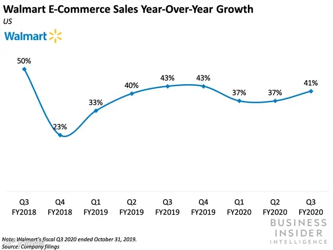 网友们纷纷表示这一举措其实是不可避免的。虽然Jet.com失败了,但沃尔玛的电商业务出现了不小的增长。eMarket的数据显示,2019年,沃尔玛在美国电商市场的占有率也从前一年的3.7%增长至4.6%,一举超过了苹果,成为了美国第三大电商网站,仅次于亚马逊和eBay。