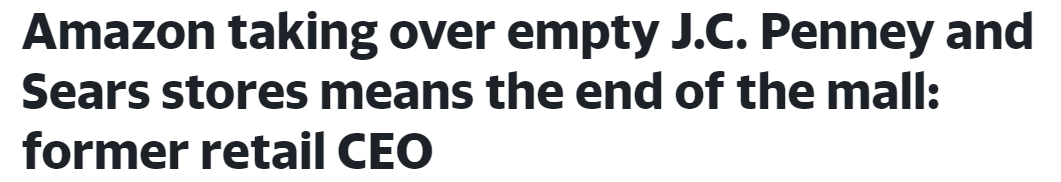 随着消费者开始将目光转向网购,各地的百货公司都在努力的维持经营,亚马逊正在和美国最大的购物中心所有者Simon Property Group进行谈判,考虑收购JCPenney和两年前宣布破产的Sears,将零售空间转为亚马逊仓库,帮助处理和运送网上订单。