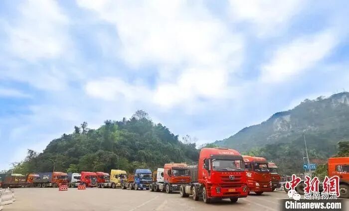 图片车辆等候通过广西凭祥综合保税区(友谊关口岸)。 北投口岸集团供图