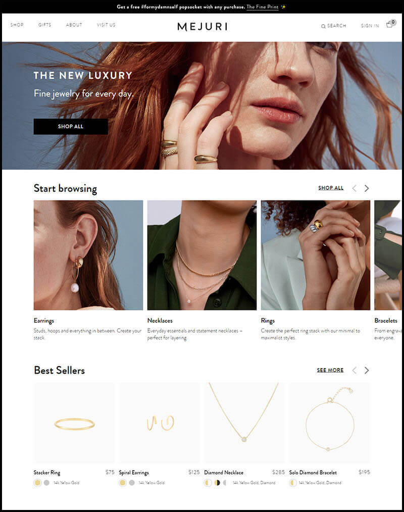长久以来,珠宝消费都属于稍有阅历的“成功女性”。华丽、价格不菲,一直是珠宝饰品的代名词。而Mejuri提出“让珠宝消费成为日常开销的一部分”理念,女性朋友们不再需要等到某个「特殊时刻」,花大价钱去买高级珠宝。
