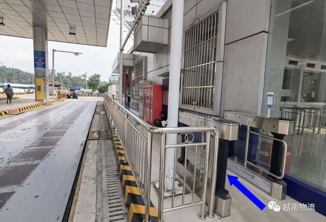 >>>1<<< 抵达广西凭祥综合保税区主卡口(卡口二),人员通行通道位于右侧。