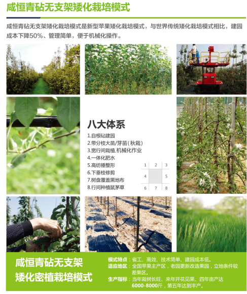 铜川照金海棠生态产业有限公司于2013年引进国家现代苹果产业技术体系最新研究成果——“青砧”,率先在铜川市耀州区建立试验及示范园,并在陕西渭北果区进行繁育、示范。公司在全国独家开发推广,定名为“咸恒青砧”。