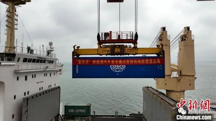 资料图:“重庆造”新能源汽车首次通过西部陆海新通道出海。 北部湾港集团供图