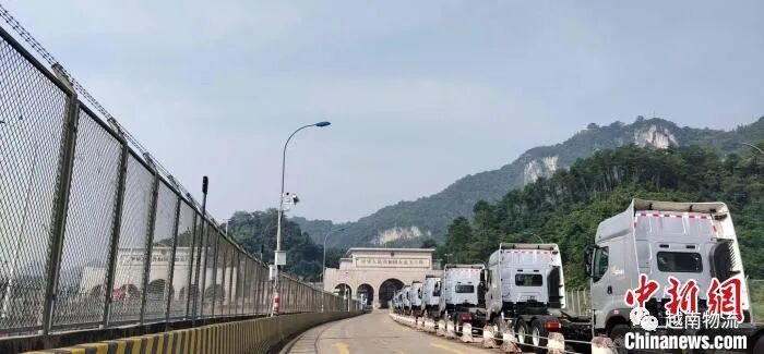 图为等待通关的货车。 友谊关海关供图