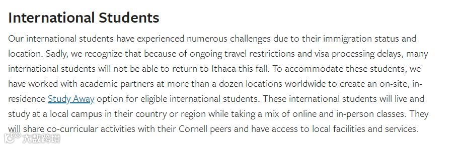 ● 康奈尔大学为“Hybrid”学校,学生必须选择至少一门线下课程,以保持在美学习的资格。