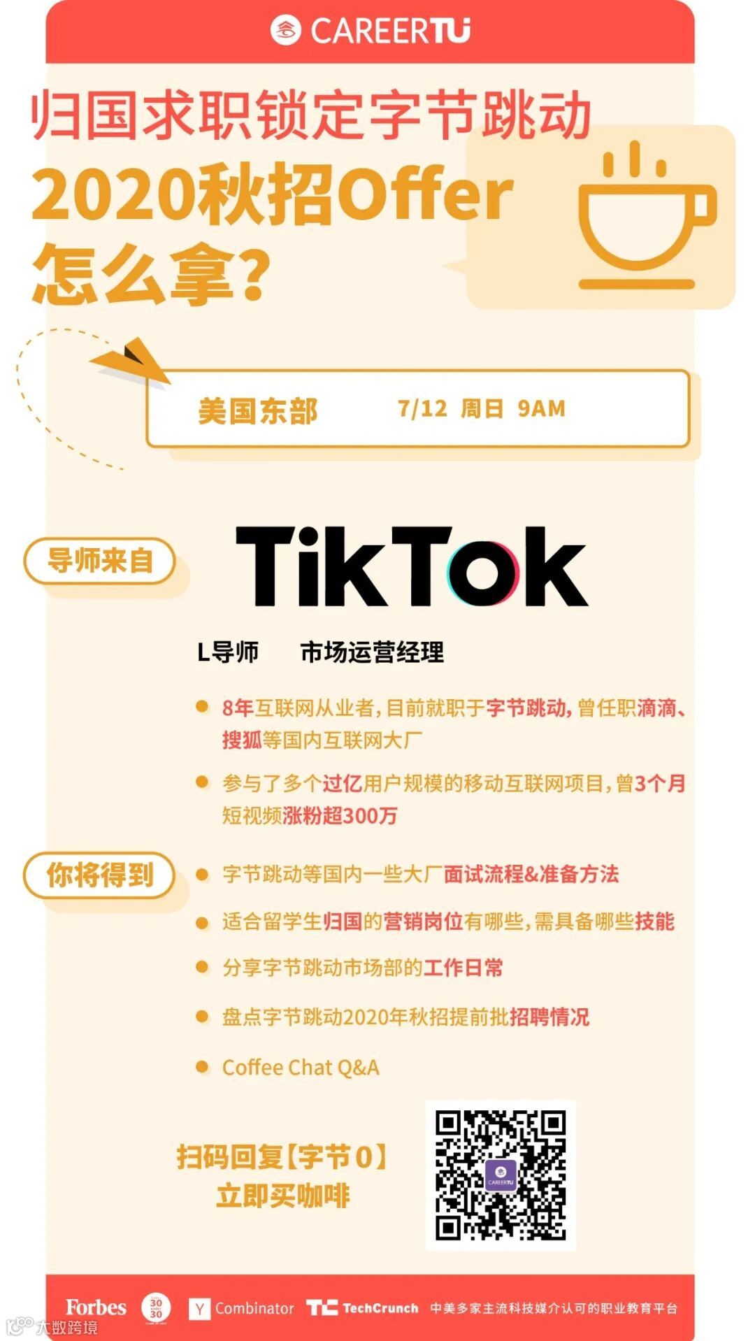 为了帮助大家顺利收获心仪Offer,我们专程邀请到字节跳动市场运营经理:L导师为大家分享,归国求职,2020秋招Offer怎么拿?