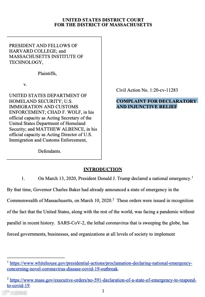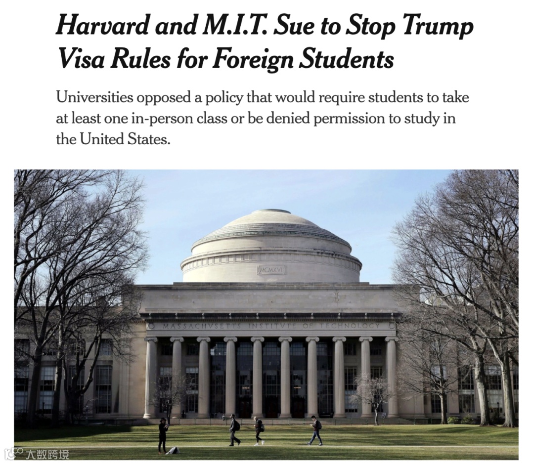 在美国时间7月8日,哈佛大学和麻省理工学院在联邦法院起诉特朗普政府,试图阻止7月6日颁布的关于驱逐留学生的指令。