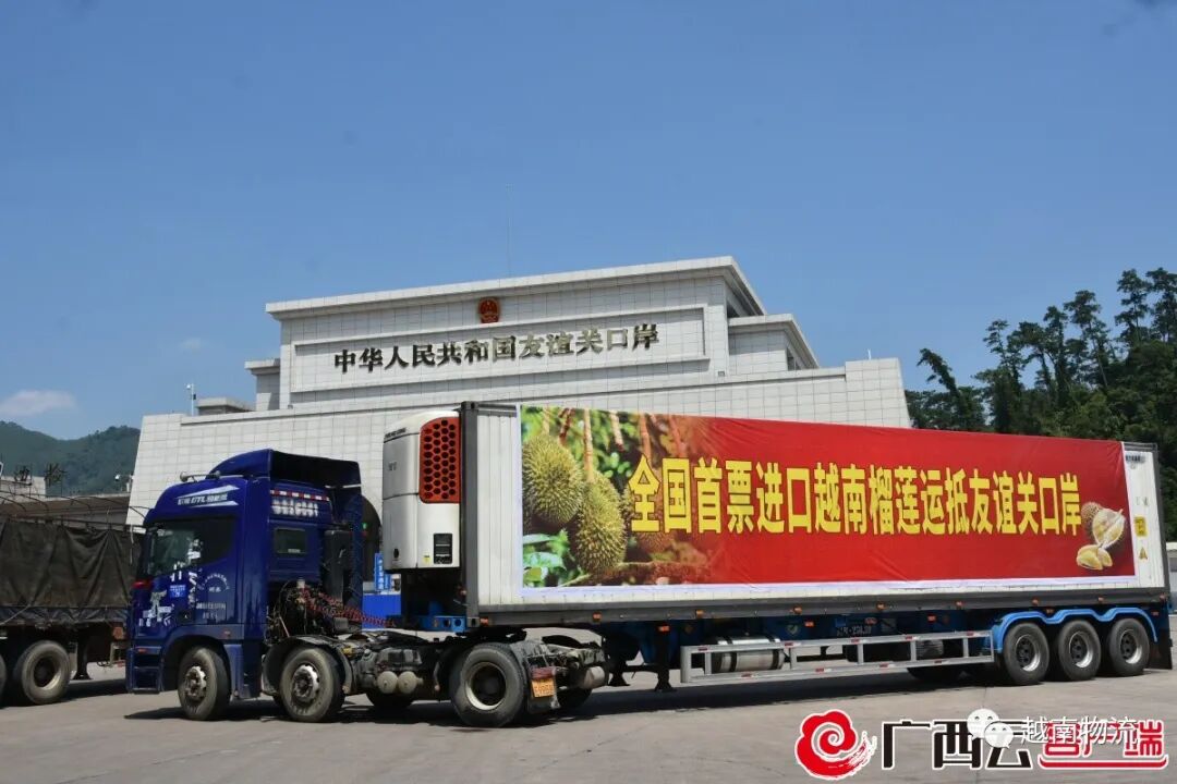 全国首票进口越南榴莲运抵友谊关口岸。冉景航 摄