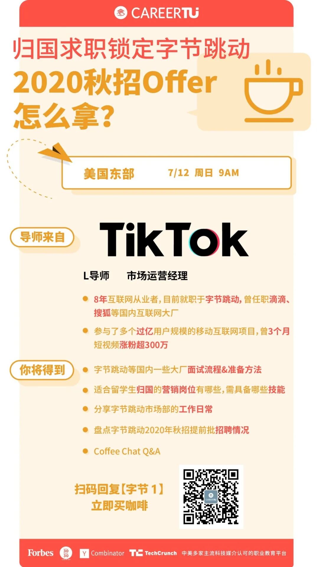 为了让小伙伴们顺利进入到字节跳动,我们专程邀请到字节跳动市场运营经理:L导师为大家分享,归国求职,2020秋招Offer怎么拿?
