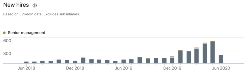 TikTok不仅品牌价值涨势凶猛,哪怕是在疫情严峻的情况下,对于人才的需求也是日益增长。今年4月的报道就表明,字节跳动今年逆势启动全球招聘,开放1万个新增岗位,并预计2020年内开放4万个岗位,覆盖研发、产品、设计、运营等多个类别。CEO张一鸣也在公开信中也表示:“2020年,公司全球员工将达到10万人。”