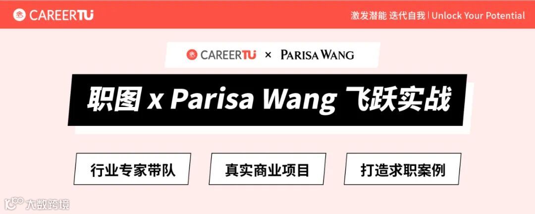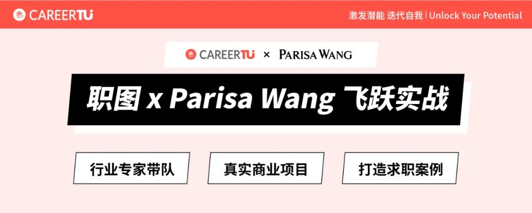 职图在本月开课的飞跃计划,面向Digital Marketing、UIUX Design和Business Intelligence,Data Science四个求职方向的同学招生!参加计划的学员在6个月的时间内,通过参与真实的商业项目,相互合作共同完成职图×Parisa Wang联名款产品网页搭建、营销推广和投放、商业智能分析及数据分析、优化的全过程。