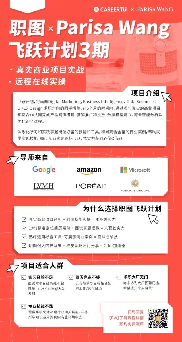 Google,Amazon, L'Oréal,Microsoft,Bloomingdale's等行业资深导师全方位手把手护航 -