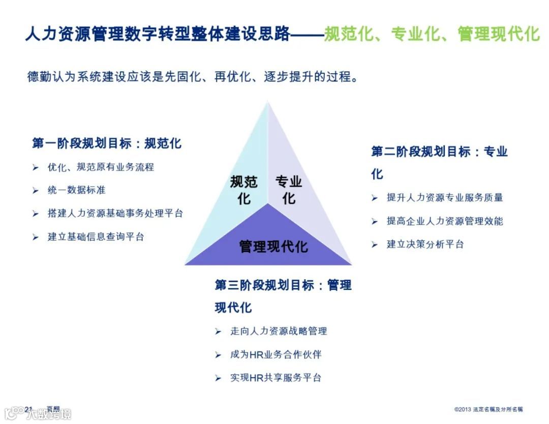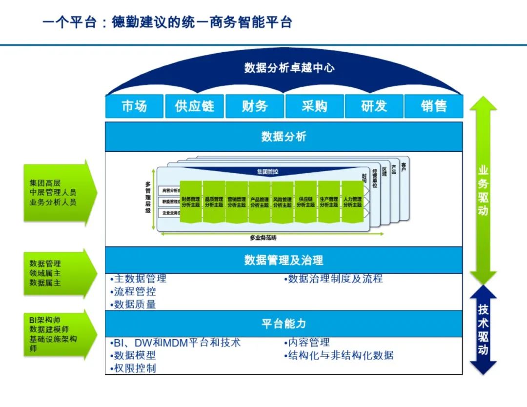 下面这份PPT材料来自德勤,介绍了制造业企业数字化转型的方法论和实施路径,重点阐述了人力资源管理、客户关系管理及商务智能管理体系建设思路,企业在规划落地数字化转型时可参考借鉴。