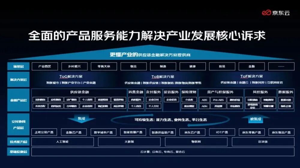 如,京东科技的供应链金融平台,可以通过金融科技为企业提供数字化金融服务。围绕不同产业特征、行业属性,提供包含供应链金融、票据融资、动产融资、信用贷款、科技赋能的综合金融解决方案。