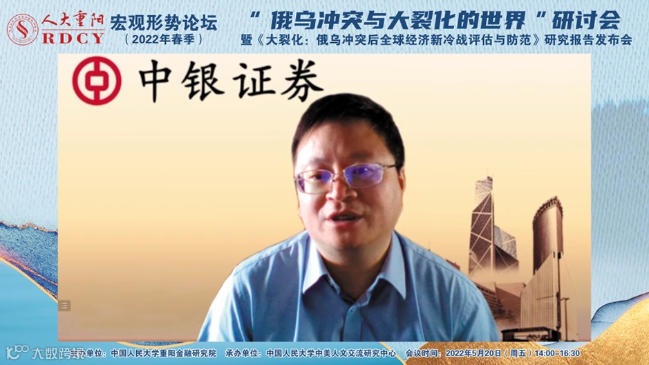 编者按:2022年5月20日,由中国人民大学重阳金融研究院(人大重阳)主办、中国人民大学中美人文交流研究中心承办的宏观形势论坛(2022年春季)“大裂化:俄乌冲突后全球经济新冷战走势评估与防范”报告发布暨研讨会于线上成功举办。会上发布了《大裂化:俄乌冲突后全球经济新冷战走势评估与防范》研究报告,多位专家学者参与会议研讨,逾20万人次在线收看了本次研讨会。中银证券全球首席经济学家管涛就金融开放相关问题进行主题发言。以下为发言全文: