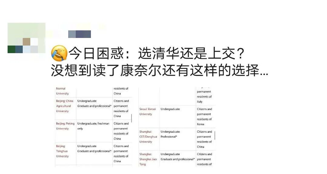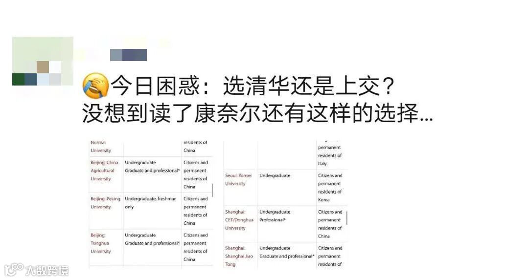 不少同学看的一脸懵,为什么康奈尔同学要选择清华上交?