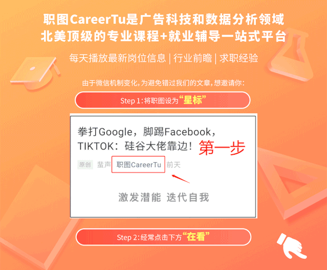 CareerTu职图 CareerTu (www.careertu.com) 是互联网新职业在线技能学习平台,专注于数字营销 数据分析 商业分析 产品设计。Unlock Your Potential 激发潜能,迭代自我 突破技能界限,实现职场飞跃