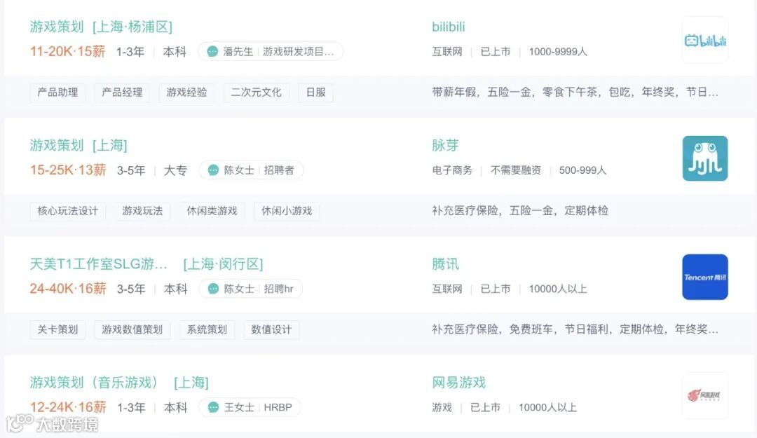 在中国,游戏公司中的岗位包括游戏策划师、游戏设计师、游戏UI设计、游戏交互设计、游戏运营、游戏市场推广、数据分析师、游戏开发者等等。薪资待遇也比其他行业类似岗位略高不少,有的年薪可以拿到15-16个月的薪资。