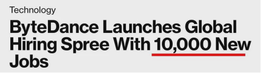 在4月14日,字节跳动发表声明说要在疫情期再招10,000名员工,争取今年可以让公司人数和阿里巴巴持平,这其中也包含了北美地区的岗位。这一数字不仅超过字节跳动以往每年春季招聘的规模,也让字节跳动成为今年少见的“扩招”企业。