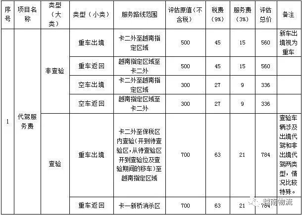根据《凭祥市关于对口岸物流疫情防控工作实行三级网格管理的通知》,要求广西凭祥水果小镇工业发展投资建设有限公司(以下简称:工投公司)对所有参与口岸物流运营短驳运输车辆、代驾司机进行规范化、标准化的统一管理、统一调度、统一结算。为确保短驳运输业务能够安全高效运行,目前,工投公司已委托第三方评估公司结合现行市场价格拟定出友谊关口岸、浦寨口岸短驳运输分段收费标准。现将凭祥市友谊关口岸、浦寨口岸短驳运输分段收费标准公告如下: