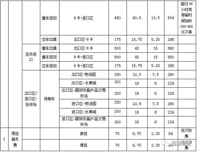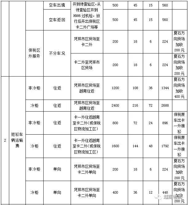 一、凭祥市友谊关口岸短驳运输分段收费标准