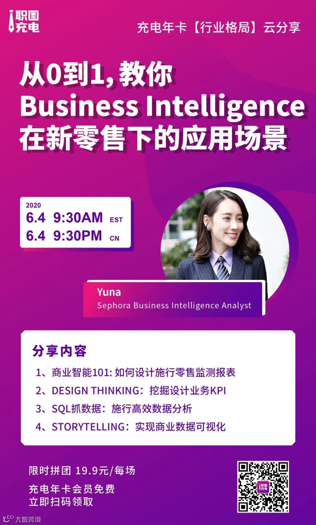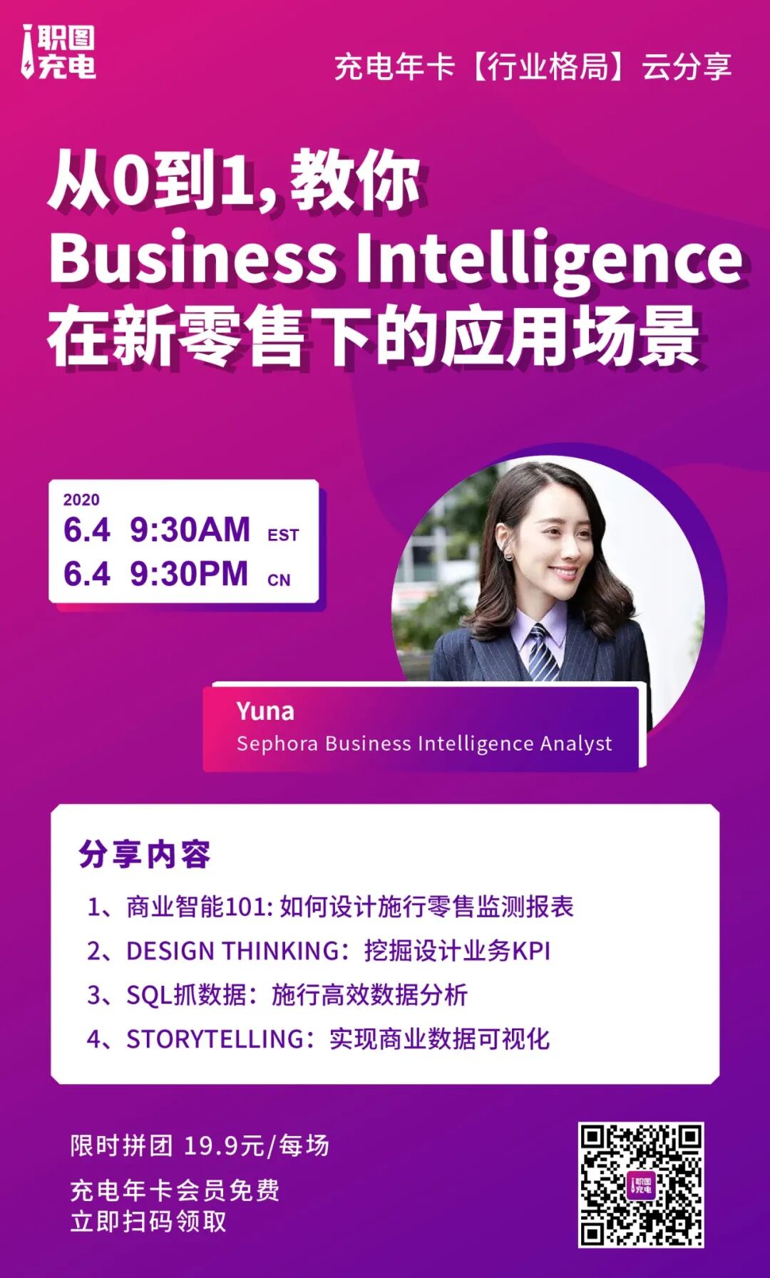 职图充电团队也在思考如何为企业、为职场人士,提供更加“接地气”的干货。于是邀请到新零售行业中的一员Yuna,丝芙兰中国的商业智能分析师,来为大家分享商业智能在新零售下的应用场景。无论是正在新零售行业从事分析工作的职场人士、想要进入国内新零售行业的海归人士、亦或是零售品牌的老板,都可以来学习或者让团队员工来学习。