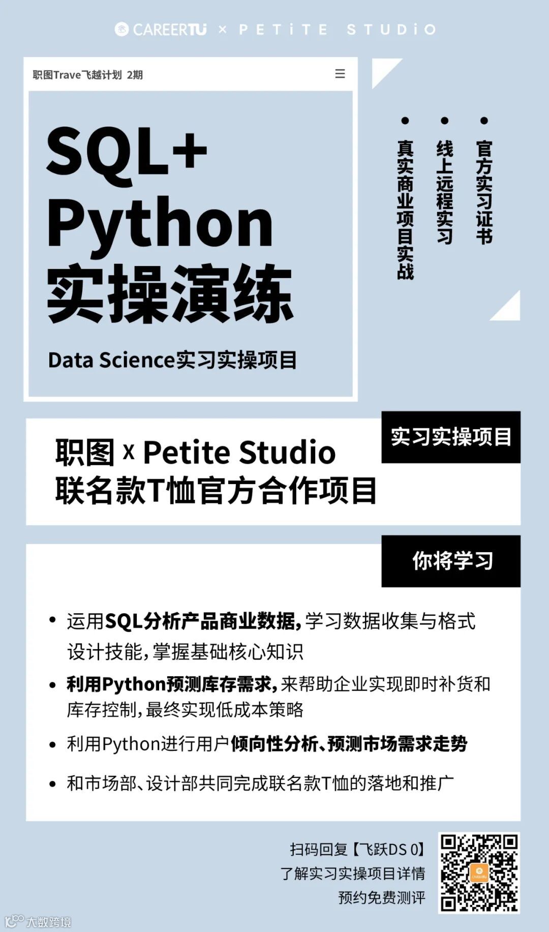 职图和著名时尚电商Petite Studio联名推出的飞跃计划,能让你在获得实习经验的同时,将高薪岗位JD上要求的硬技能一网打尽!