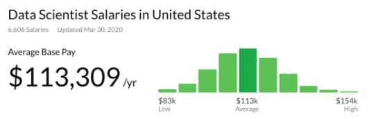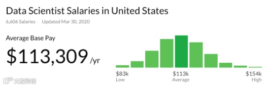 著名求职网站Glassdoor给出最新数据,2020年,以数据科学家为例的Data岗位工作者的收入平均数为$ 113,309,吊打绝大多数职位的收入并直逼一线资深工程师的薪酬。