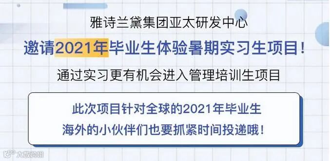 雅诗兰黛正在招聘暑期实习,通过有机会进入管培项目